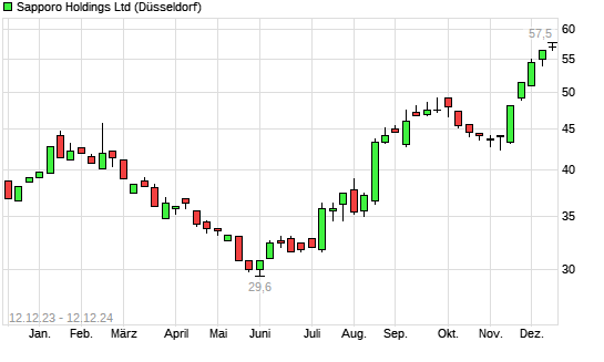 Mit dem Anstieg auf 58,00 EUR hat die Sapporo Holdings-Aktie (ISIN JP3320800000) am 11.12.2024 ein neues All-Time-High erreicht und damit den Kurs vom 09.12.2024 eingestellt.