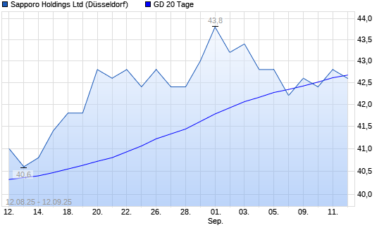 Mit dem Anstieg auf 43,00 EUR hat die Sapporo Holdings-Aktie am 11.09.2025 die 20-Tage-Linie nach oben gekreuzt.
