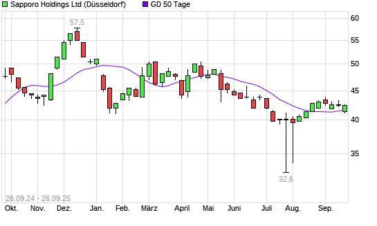 Mit dem Anstieg auf 42,20 EUR hat die Sapporo Holdings-Aktie am 25.09.2025 die 50-Tage-Linie nach oben gekreuzt.