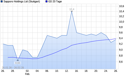 Mit dem Rücksetzer auf 9,15 EUR hat die Sapporo Holdings-Aktie am 25.02.2026 die 20-Tage-Linie nach unten gekreuzt.