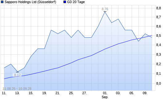 Mit dem Anstieg auf 43,00 EUR hat die Sapporo Holdings-Aktie am 09.09.2025 die 20-Tage-Linie nach oben gekreuzt.Die Sapporo Holdings-Aktie befindet sich seit dem 13.05.2025 ...weiterlesen