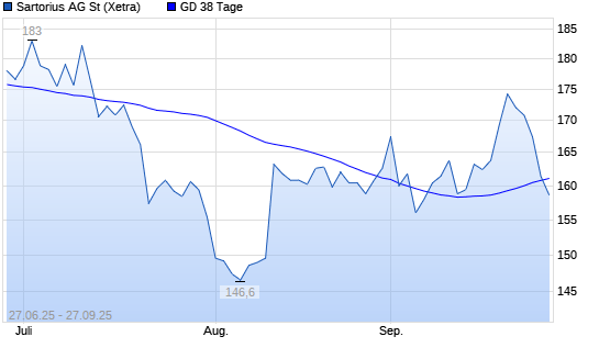 Mit dem Rücksetzer auf 160,60 EUR hat die Sartorius-Aktie am 26.09.2025 die 38-Tage-Linie nach unten gekreuzt.