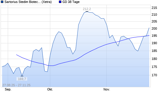 Mit dem Anstieg auf 204,10 EUR hat die Sartorius Stedim Biotech-Aktie am 26.11.2025 die 38-Tage-Linie nach oben gekreuzt.