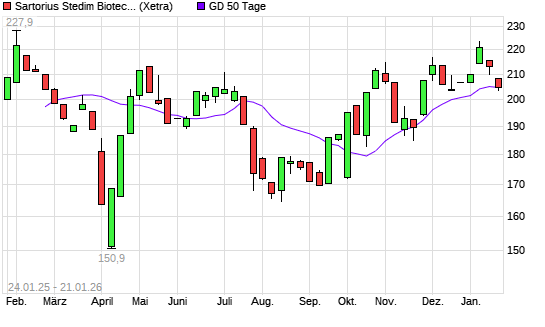 Mit dem Anstieg auf 208,90 EUR hat die Sartorius Stedim Biotech-Aktie am 23.01.2026 die 50-Tage-Linie nach oben gekreuzt.