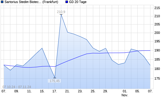 Mit dem Rücksetzer auf 186,65 EUR hat die Sartorius Stedim Biotech-Aktie am 06.11.2024 die 20-Tage-Linie nach unten gekreuzt.