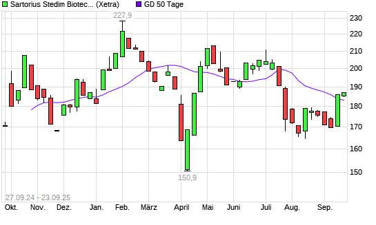Mit dem Rücksetzer auf 174,90 EUR hat die Sartorius Stedim Biotech-Aktie am 26.09.2025 die 50-Tage-Linie nach unten gekreuzt.