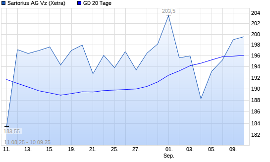 Mit dem Anstieg auf 197,85 EUR hat die Sartorius Vz-Aktie am 09.09.2025 die 20-Tage-Linie nach oben gekreuzt.