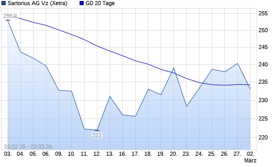 Mit dem Rücksetzer auf 233,90 EUR hat die Sartorius Vz-Aktie am 02.03.2026 die 20-Tage-Linie nach unten gekreuzt.