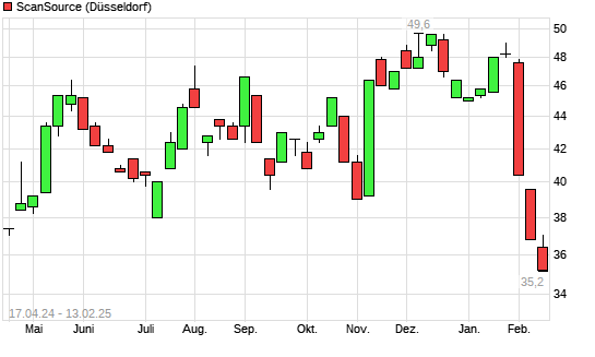 Mit dem Rücksetzer auf 36,40 EUR hat die ScanSource-Aktie (ISIN US8060371072) am 12.02.2025 ein neues 12-Monats-Tief erreicht und damit den Kurs vom 12.02.2024 eingestellt.