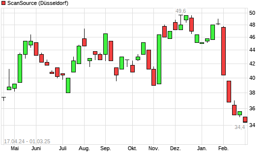 Mit dem Rücksetzer auf 34,80 EUR hat die ScanSource-Aktie (ISIN US8060371072) am 28.02.2025 ein neues 12-Monats-Tief erreicht und damit den Kurs vom 25.02.2025 eingestellt.