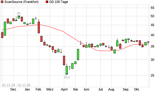 Mit dem Anstieg auf 36,80 EUR hat die ScanSource-Aktie am 31.10.2025 die 100-Tage-Linie nach oben gekreuzt.
