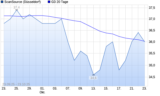 Mit dem Anstieg auf 36,60 EUR hat die ScanSource-Aktie am 22.10.2025 die 20-Tage-Linie nach oben gekreuzt.