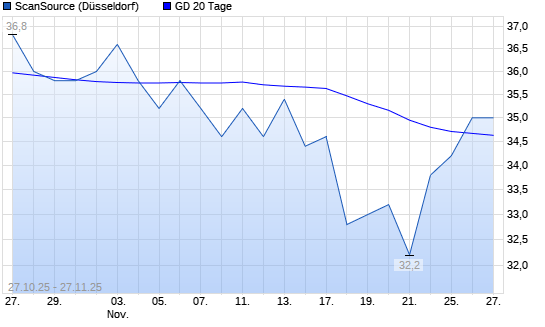 Mit dem Anstieg auf 35,40 EUR hat die ScanSource-Aktie am 26.11.2025 die 20-Tage-Linie nach oben gekreuzt.