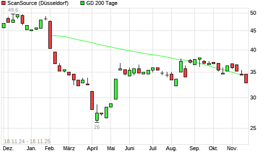 Mit dem Anstieg auf 35,20 EUR hat die ScanSource-Aktie am 17.11.2025 die 200-Tage-Linie nach oben gekreuzt.