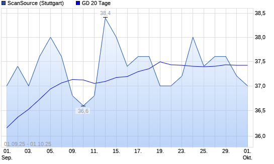 Mit dem Rücksetzer auf 37,40 EUR hat die ScanSource-Aktie am 30.09.2025 die 20-Tage-Linie nach unten gekreuzt.