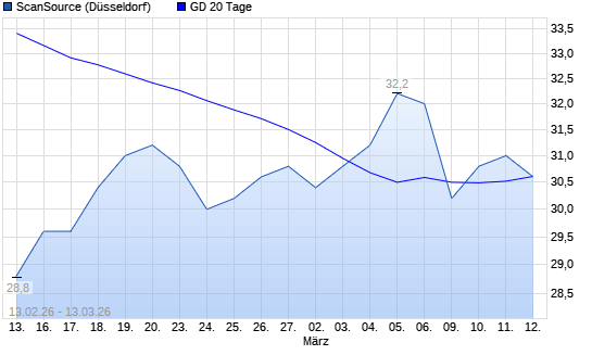 Mit dem Rücksetzer auf 30,80 EUR hat die ScanSource-Aktie am 12.03.2026 die 20-Tage-Linie nach unten gekreuzt.