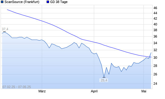Mit dem Rücksetzer auf 29,80 EUR hat die ScanSource-Aktie am 06.05.2025 die 38-Tage-Linie nach unten gekreuzt.