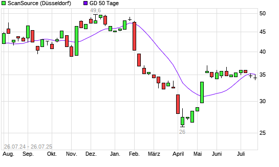 Mit dem Rücksetzer auf 34,60 EUR hat die ScanSource-Aktie am 25.07.2025 die 50-Tage-Linie nach unten gekreuzt.