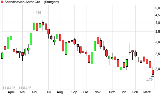 Mit dem Rücksetzer auf 1,65 EUR hat die Scandinavian Astor Group-Aktie (ISIN SE0019175274) am 13.03.2026 ein neues 12-Monats-Tief erreicht und damit den Kurs vom 12.03.2026 eingestellt.