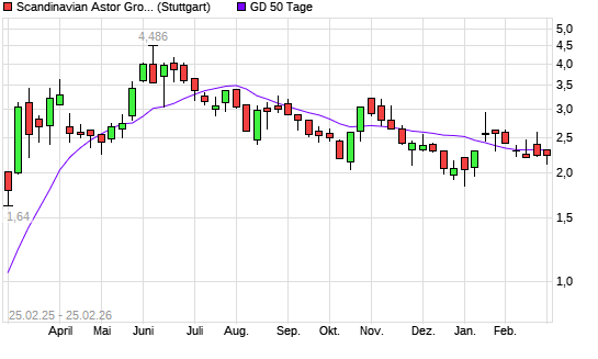 Mit dem Rücksetzer auf 1,96 EUR hat die Scandinavian Astor Group-Aktie am 24.02.2026 die 50-Tage-Linie nach unten gekreuzt.