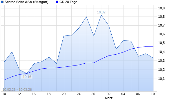 Mit dem Rücksetzer auf 10,38 EUR hat die Scatec ASA-Aktie am 09.03.2026 die 20-Tage-Linie nach unten gekreuzt.