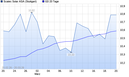 Mit dem Rücksetzer auf 10,48 EUR hat die Scatec ASA-Aktie am 19.03.2026 die 20-Tage-Linie nach unten gekreuzt.