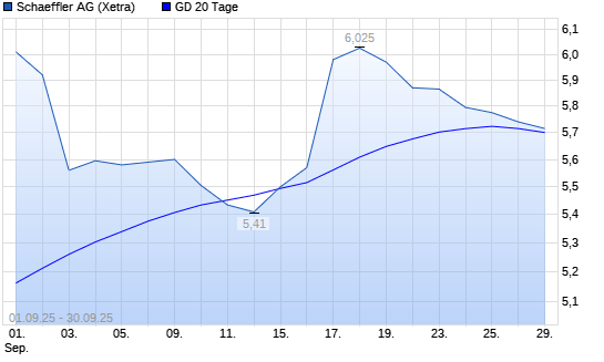 Mit dem Anstieg auf 5,77 EUR hat die Schaeffler-Aktie am 29.09.2025 die 20-Tage-Linie nach oben gekreuzt.