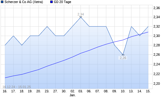 Mit dem Anstieg auf 2,28 EUR hat die Scherzer & Co.-Aktie am 14.01.2025 die 20-Tage-Linie nach oben gekreuzt.