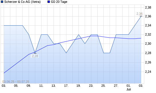 Mit dem Rücksetzer auf 2,26 EUR hat die Scherzer & Co.-Aktie am 02.07.2025 die 20-Tage-Linie nach unten gekreuzt.