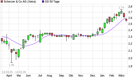 Mit dem Rücksetzer auf 2,54 EUR hat die Scherzer & Co.-Aktie am 12.03.2026 die 50-Tage-Linie nach unten gekreuzt.