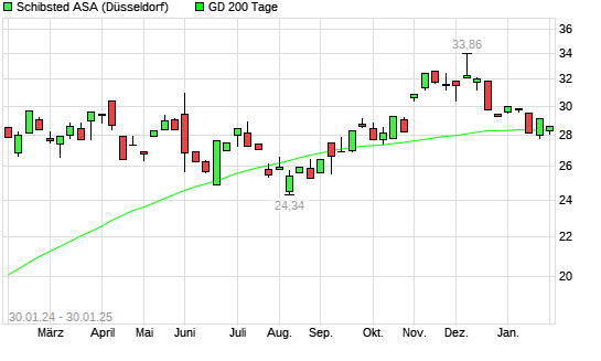 Mit dem Anstieg auf 28,48 EUR hat die Schibsted A-Aktie am 29.01.2025 die 200-Tage-Linie nach oben gekreuzt.