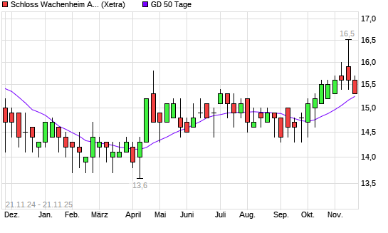 Mit dem Rücksetzer auf 15,00 EUR hat die Schloss Wachenheim AG-Aktie am 20.11.2025 die 50-Tage-Linie nach unten gekreuzt.