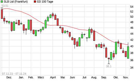 Mit dem Anstieg auf 41,20 EUR hat die Schlumberger-Aktie am 06.11.2024 die 100-Tage-Linie nach oben gekreuzt.