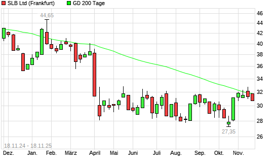 Mit dem Anstieg auf 31,70 EUR hat die Schlumberger-Aktie am 17.11.2025 die 200-Tage-Linie nach oben gekreuzt.