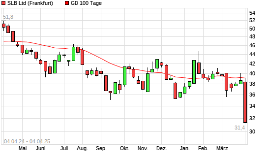 Mit dem Rücksetzer auf 35,65 EUR hat die Schlumberger-Aktie am 03.04.2025 die 100-Tage-Linie nach unten gekreuzt.