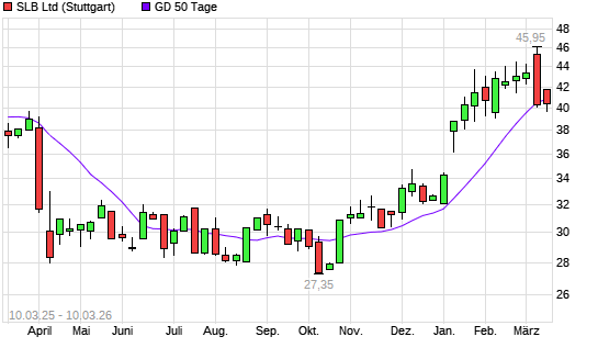 Mit dem Rücksetzer auf 40,20 EUR hat die Schlumberger-Aktie am 09.03.2026 die 50-Tage-Linie nach unten gekreuzt.