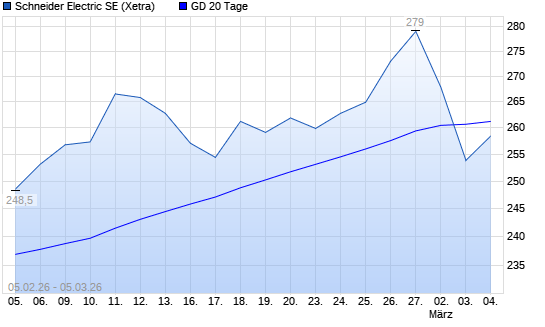 Mit dem Anstieg auf 262,50 EUR hat die Schneider Electric-Aktie am 04.03.2026 die 20-Tage-Linie nach oben gekreuzt.