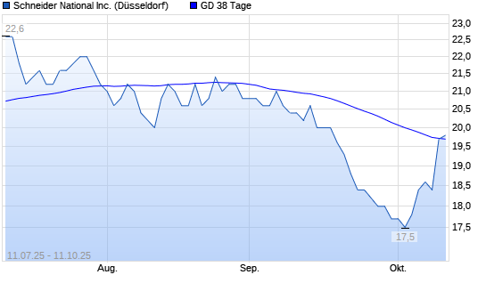 Mit dem Anstieg auf 19,60 EUR hat die Schneider National-Aktie am 10.10.2025 die 38-Tage-Linie nach oben gekreuzt.