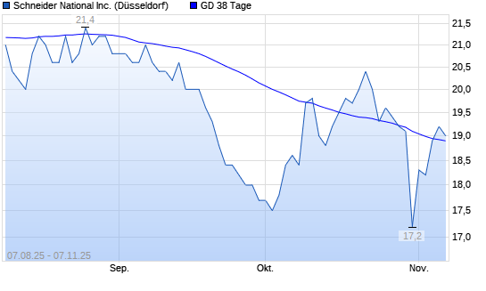 Mit dem Anstieg auf 19,00 EUR hat die Schneider National-Aktie am 06.11.2025 die 38-Tage-Linie nach oben gekreuzt.