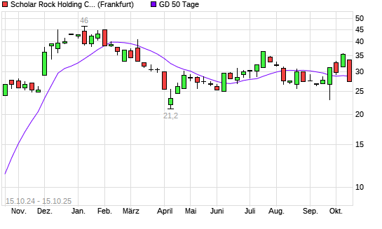 Mit dem Rücksetzer auf 27,60 EUR hat die Scholar Rock Holding-Aktie am 14.10.2025 die 50-Tage-Linie nach unten gekreuzt.