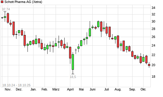 Mit dem Rücksetzer auf 19,74 EUR hat die Schott Pharma-Aktie (ISIN DE000A3ENQ51) am 17.10.2025 ein neues All-Time-Low erreicht und damit den Kurs vom 10.04.2025 eingestellt.