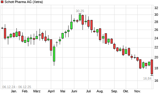Mit dem Rücksetzer auf 16,98 EUR hat die Schott Pharma-Aktie (ISIN DE000A3ENQ51) am 05.12.2025 ein neues All-Time-Low erreicht und damit den Kurs vom 21.11.2025 eingestellt.