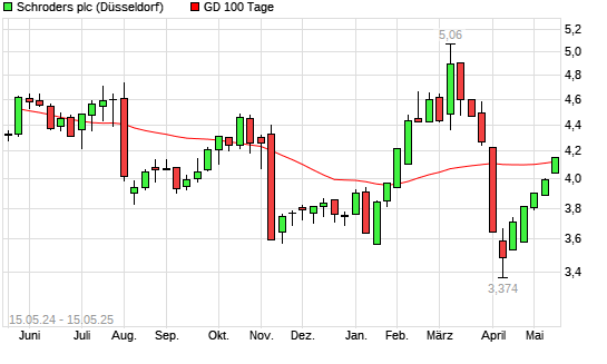 Mit dem Anstieg auf 4,15 EUR hat die Schroders-Aktie am 14.05.2025 die 100-Tage-Linie nach oben gekreuzt.