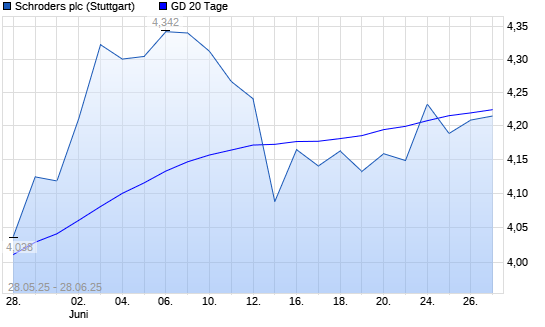 Mit dem Anstieg auf 4,31 EUR hat die Schroders-Aktie am 27.06.2025 die 20-Tage-Linie nach oben gekreuzt.