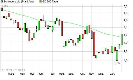 Mit dem Anstieg auf 4,22 EUR hat die Schroders-Aktie am 31.01.2025 die 200-Tage-Linie nach oben gekreuzt.