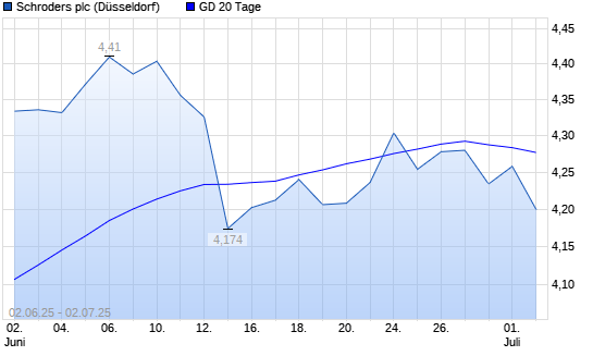 Mit dem Rücksetzer auf 4,24 EUR hat die Schroders-Aktie am 01.07.2025 die 20-Tage-Linie nach unten gekreuzt.