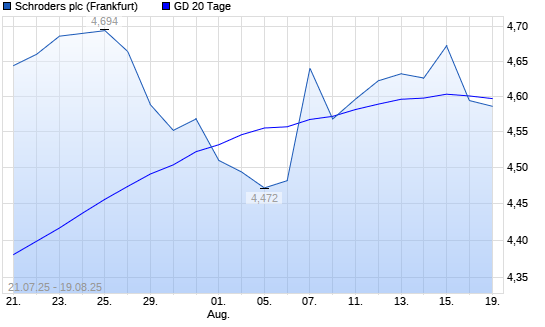 Mit dem Rücksetzer auf 4,59 EUR hat die Schroders-Aktie am 18.08.2025 die 20-Tage-Linie nach unten gekreuzt.
