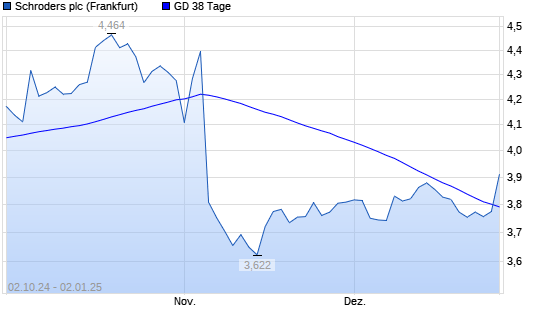 Mit dem Rücksetzer auf 3,77 EUR hat die Schroders-Aktie am 01.01.2025 die 38-Tage-Linie nach unten gekreuzt.