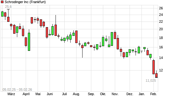 Mit dem Rücksetzer auf 11,22 EUR hat die Schrodinger-Aktie (ISIN US80810D1037) am 04.02.2026 ein neues All-Time-Low erreicht und damit den Kurs vom 30.01.2026 eingestellt.