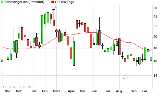 Mit dem Anstieg auf 18,15 EUR hat die Schrodinger-Aktie am 16.10.2025 die 100-Tage-Linie nach oben gekreuzt.
